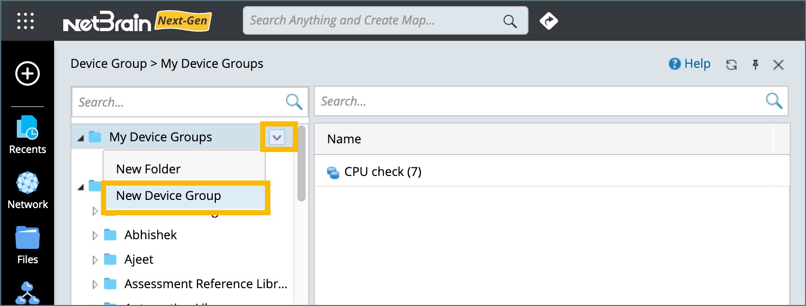 Note: The device groups in the My Device Groups category are only accessible to you; the device groups in the Shared, Policy and System category are accessible to all domain users.