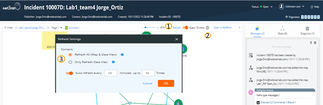 - Turn on Refresh to enable refreshing the map and data view.