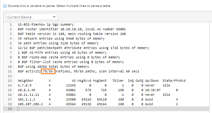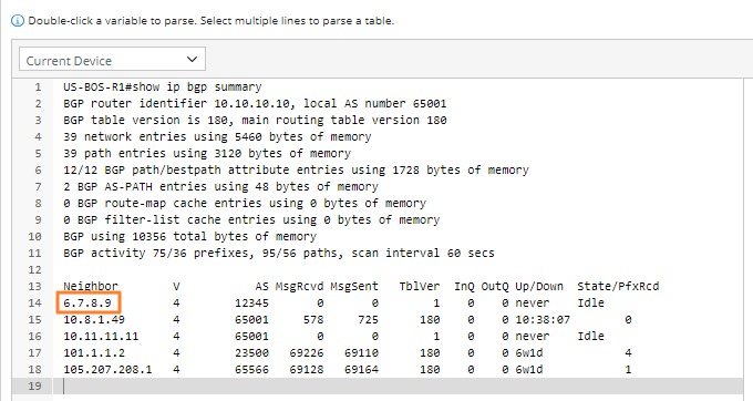 Take the BGP router as an example: If you want to parse its ip address, the string local AS you are not interested in can be skipped.
