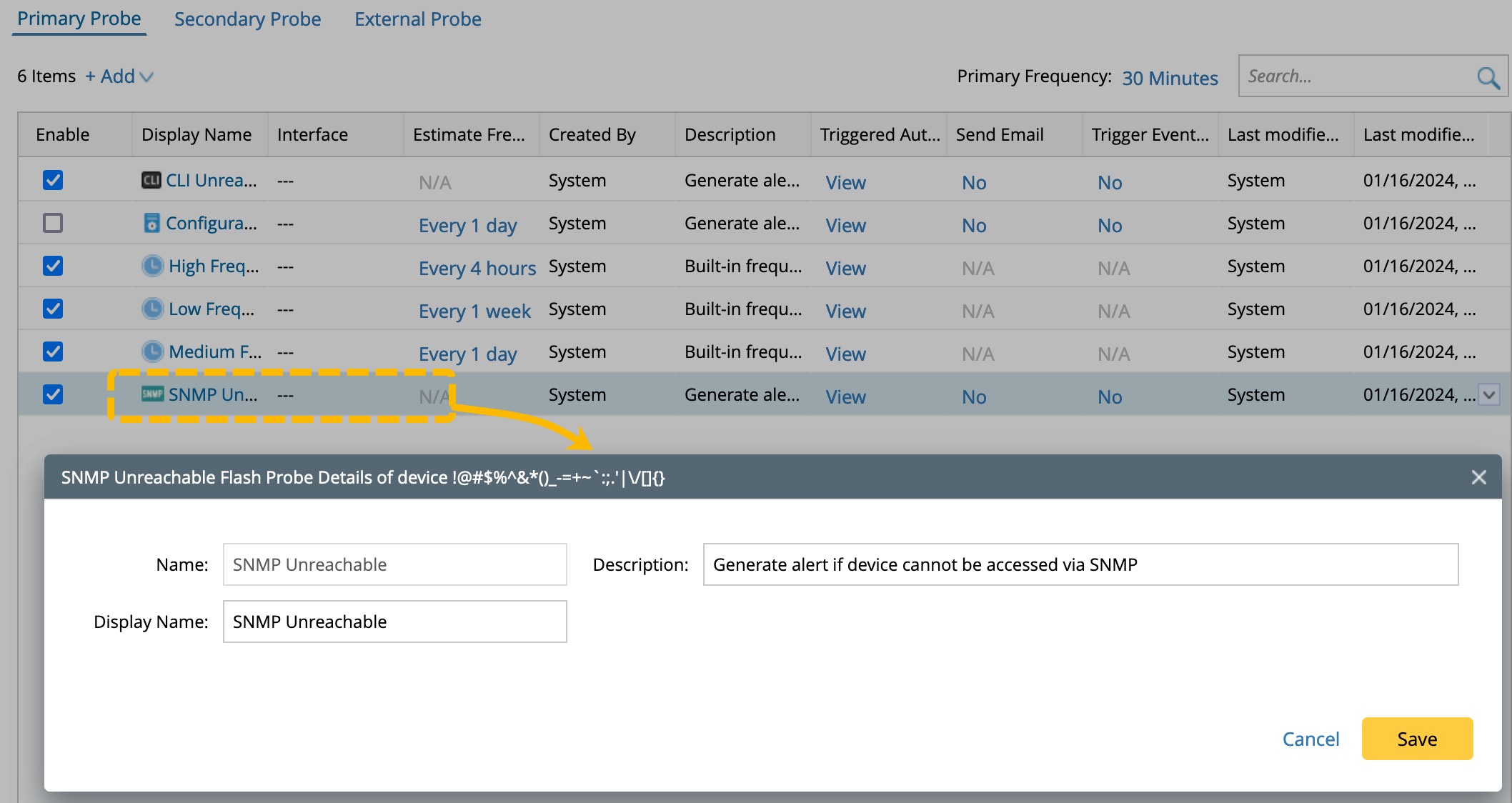 SNMP Unreachable Flash Probe
