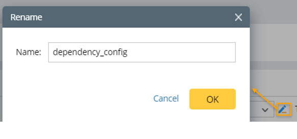 icon at the upper left corner of the right pane, then modify the dependency pattern name, for example, change the dependency pattern name to dependency_config.