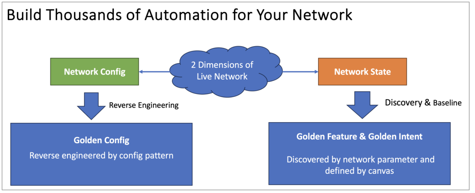 - Golden Feature: Model the critical design assets for your network and can be used as the base to further build the intent automation (Golden Intent).