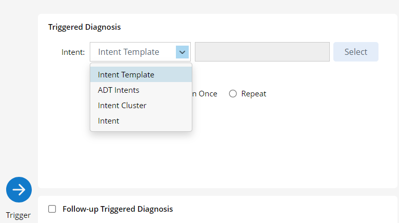 After an intent template is selected, you can set more settings for the diagnosis based on this intent template.