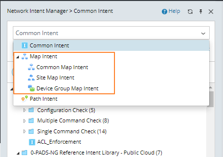 Intents are further grouped into three categories: Common Map Intent, Site Map Intent, Device Group Map Intent so that you can know the source and functionalities of the map intents.