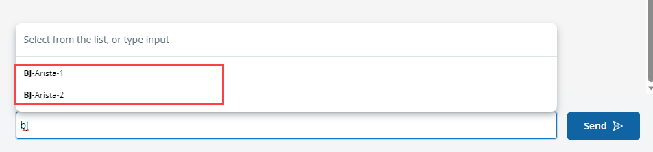 - BJ-Arista-1 and BJ-Arista-2 are in the candidate list. Enter BJ and press the Tab key, BJ-Arista-1 will be auto-completed in the input box.