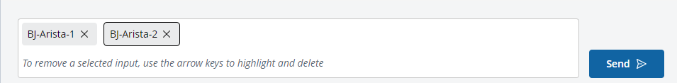 | Delete a value from the input box | Arrow keys and Delete key. Example: Delete BJ-Arista-2 Use the arrow keys to select BJ-Arista-2, press the Delete key.  |