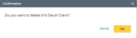 - In the pop-up confirmation dialog, click Yes to delete the OAuth client.