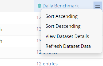 - From the dropdown menu of an Dataset column in ADT View, the following operations can be performed as shown in the screenshot below: