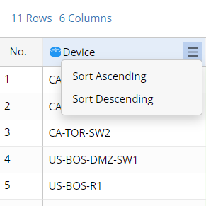 Note: Alternatively, you can change the sorting order of columns by the icon and the icon from the column header.