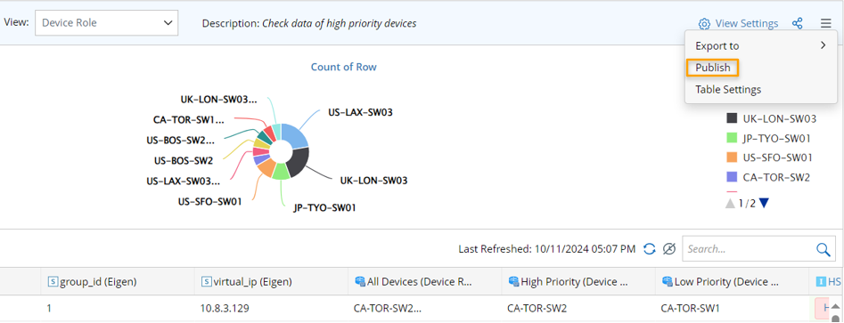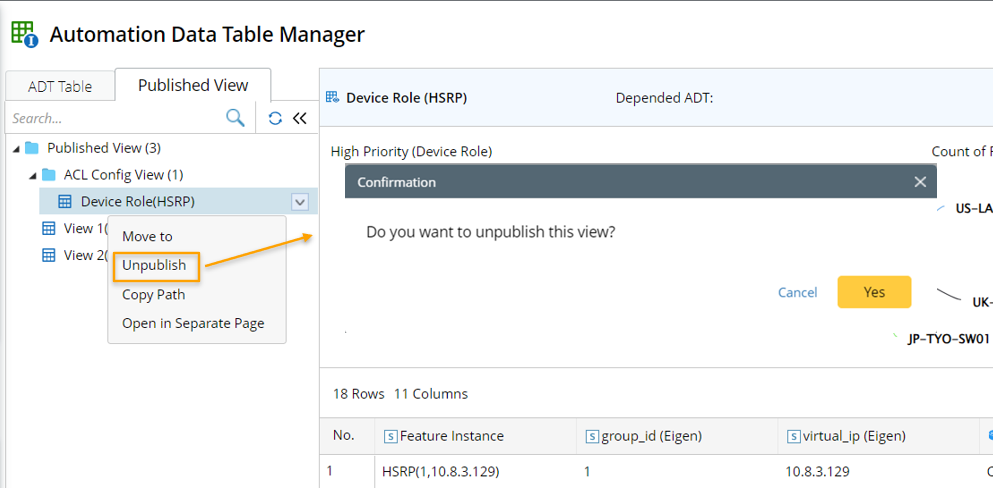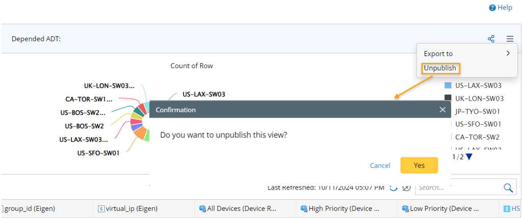 The view will be removed from the Published View folder Tree. Corresponding user privilege is required to unpublish a View.