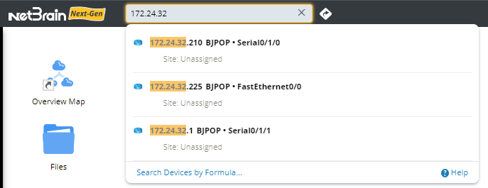 In NetBrain system, your entire network becomes a searchable database, and you can search for a device by using one of the following search terms: