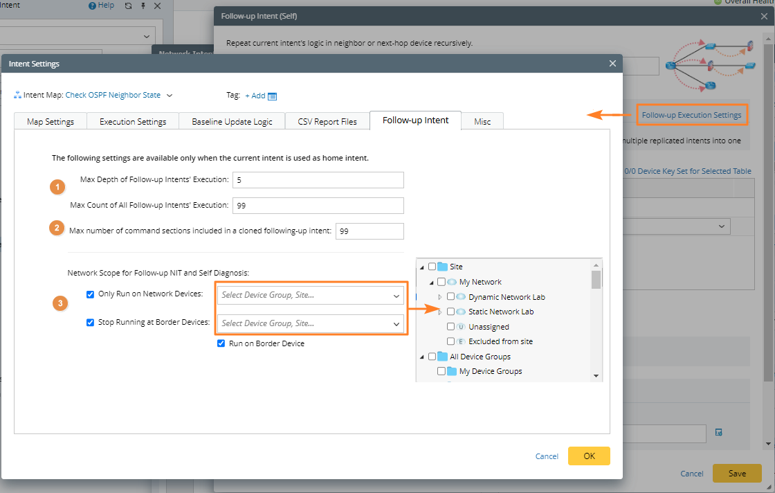 - When entering a border device, it will not continue to find its neighbors, but whether to clone the intent and continue the diagnosis on the current border device can be set.