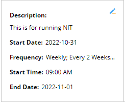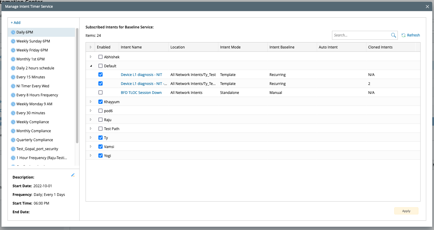 | Intent Timer Name | Frequency | Start Time |