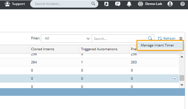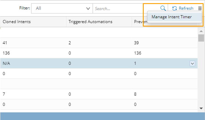icon at the upper right of the Installed Intents pane, then select Manage Intent Timer to add a new timer and manage timers.