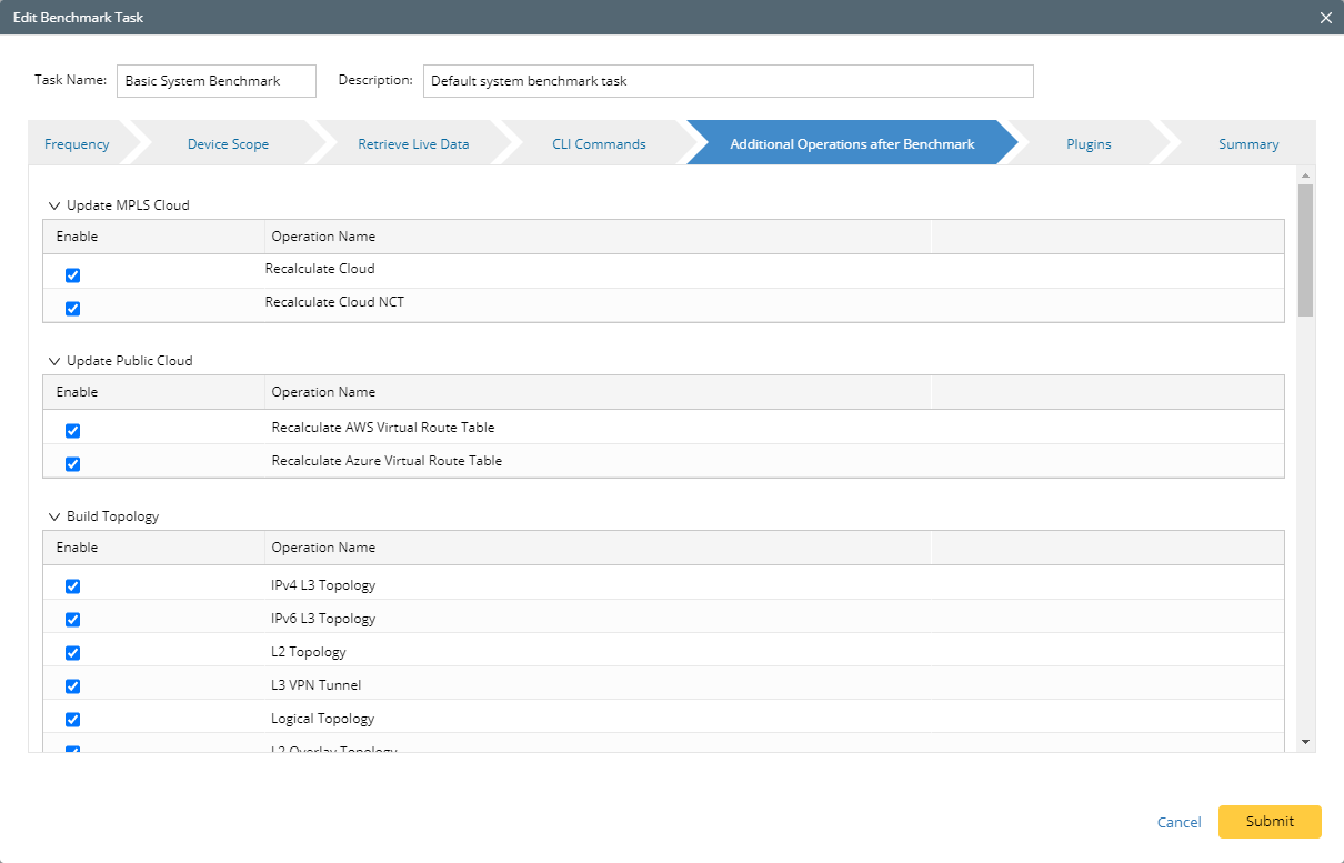 Note: As a best practice, we recommend re-using the “Basic System Benchmark” with a full benchmark task, where all devices are selected. This ensures that all AWS-connected physical or virtual devices are selected within the device scope.