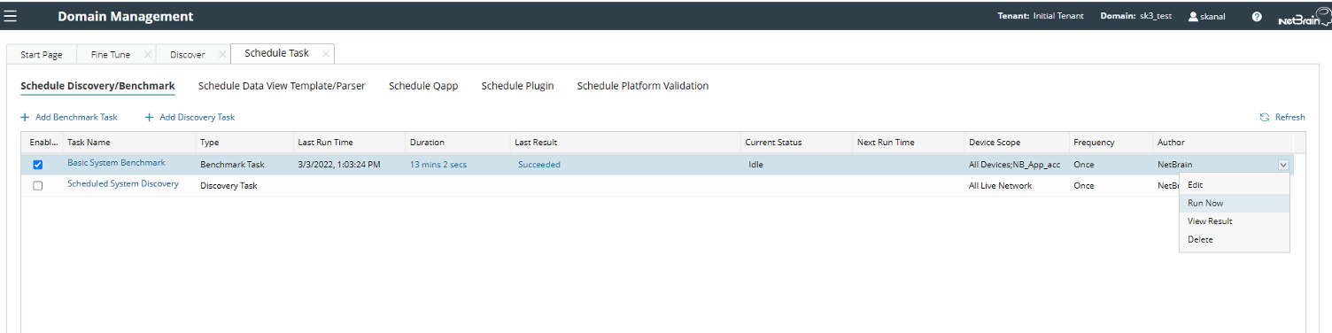- Click the Scheduled Task tab and run the Basic System Benchmark.