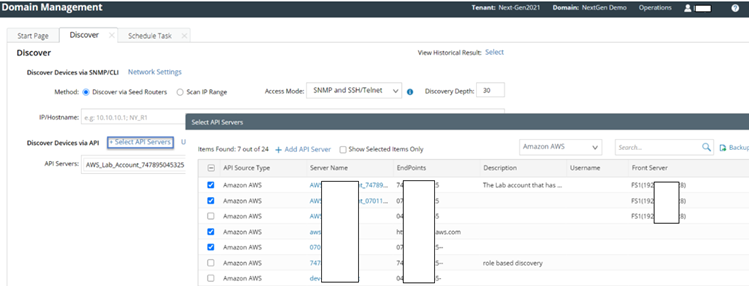 - In the Discover Devices via API area, click Select API Servers to select the API servers you want to discover.
