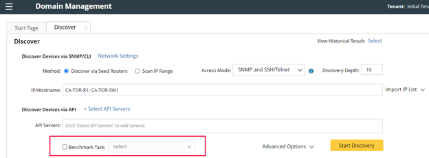 - Select a Benchmark task you wish to execute right after the Discover task to update device data like topology and MPLS cloud. The discovered devices are not ready to use in features like maps or paths until the Benchmark finishes. You can also skip this step and leave it for the next scheduled System Benchmark.