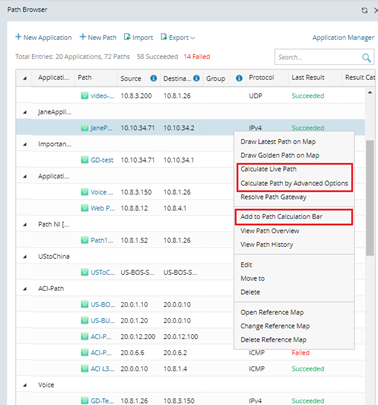 - Add to Path Calculation Bar — The Source and Destination IP will be populated to Path Calculation Bar.