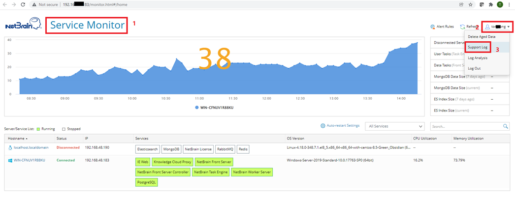 Note: Use Service Monitor > Support Log to export the python error/debug logs from Worker Server and Front Server.