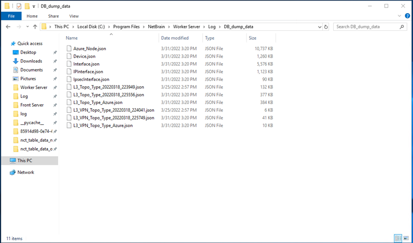 - Collect dump data. A folder named “DB_dump_data” should have been created under “C:\Program Files\NetBrain\Worker Server\Log”. You can use that dumped data in NetBrain’s environment.