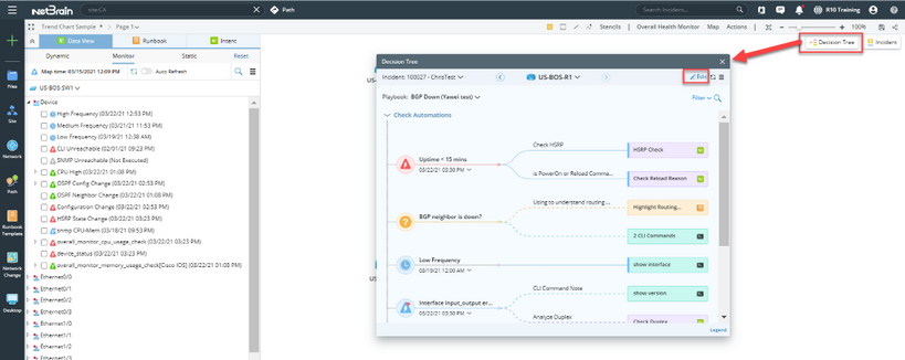 To activate edit mode, open the desired map, then click Decision Tree icon and click the Edit button.