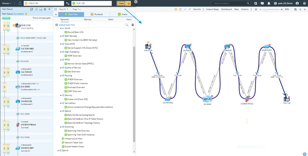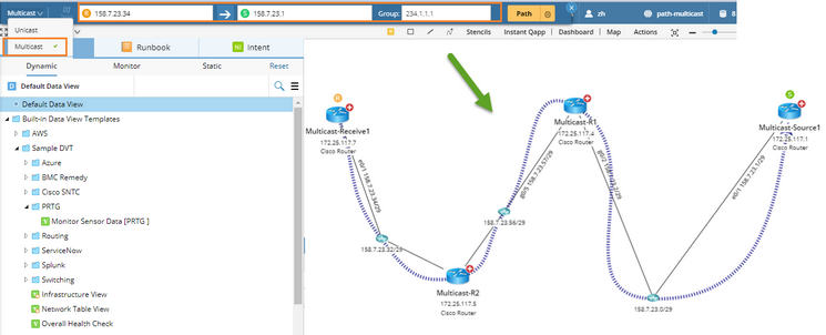 You can use the Path Calculator to instantly map an end-to-end traffic flow from one endpoint to another, or from a receiver to a source (multicast network) and then troubleshoot or monitor your network traffics based on the visualized path.