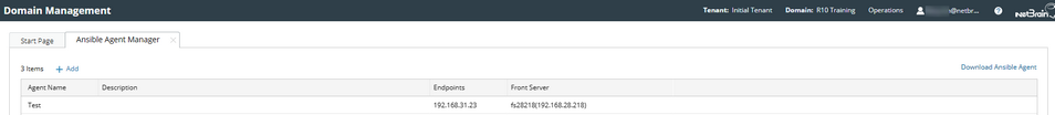 The hostname and IP address of the NetBrain Ansible Agent server. |