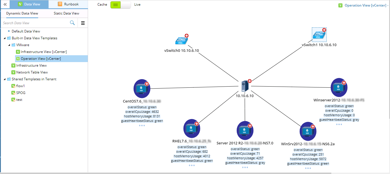 After discovering your vCenter network, you can visualize the network data on a map, such as topology and IP address. Besides, you can apply a data view template to visualize more information on the map.
