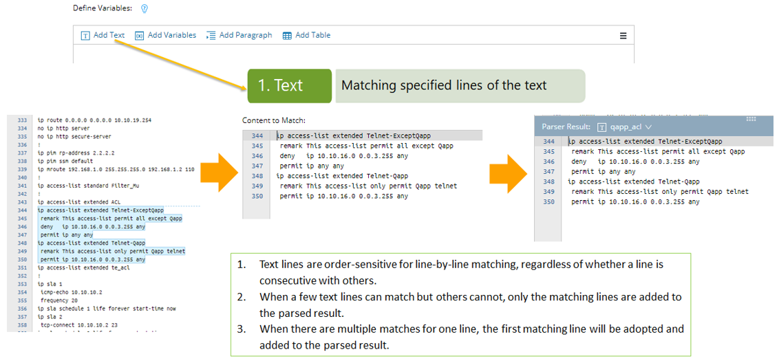 Text parser can match specified lines of text. See Define a Text Parser for more details.