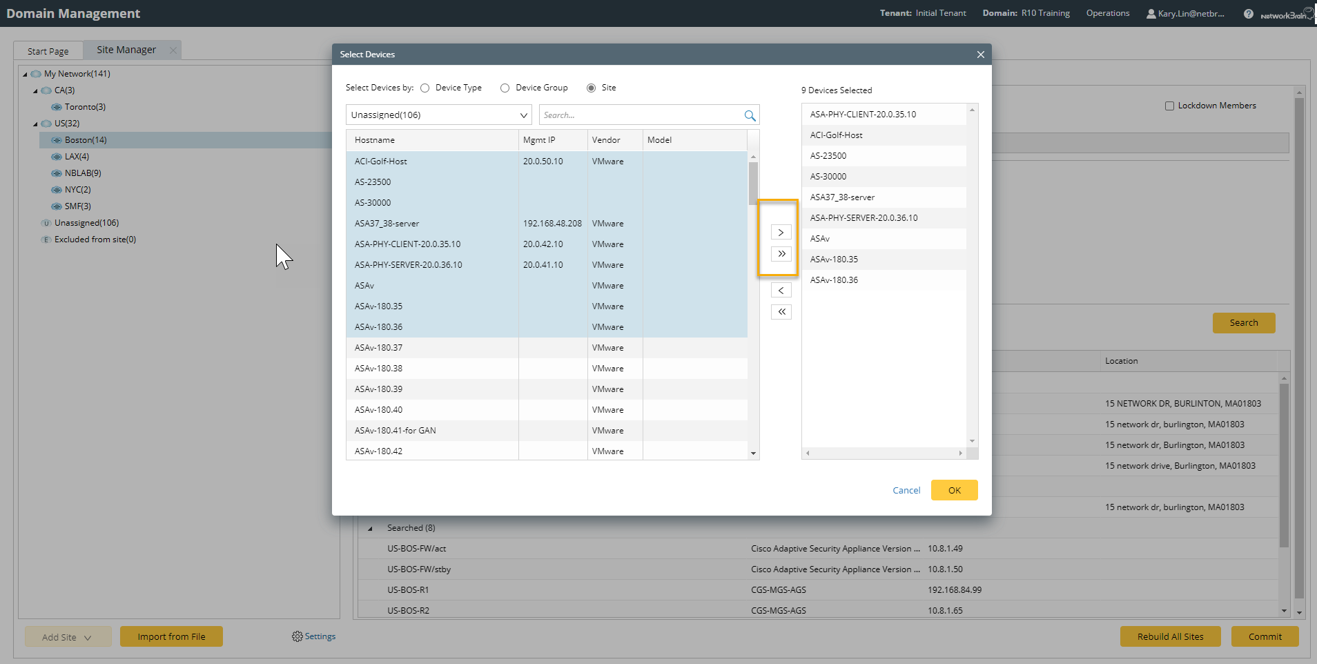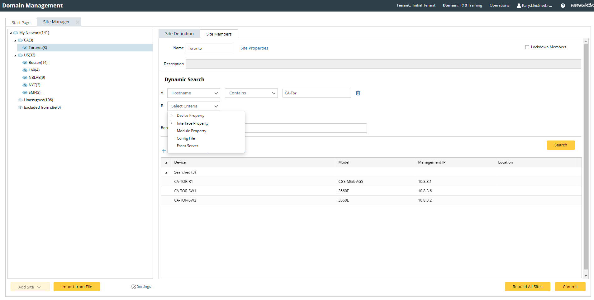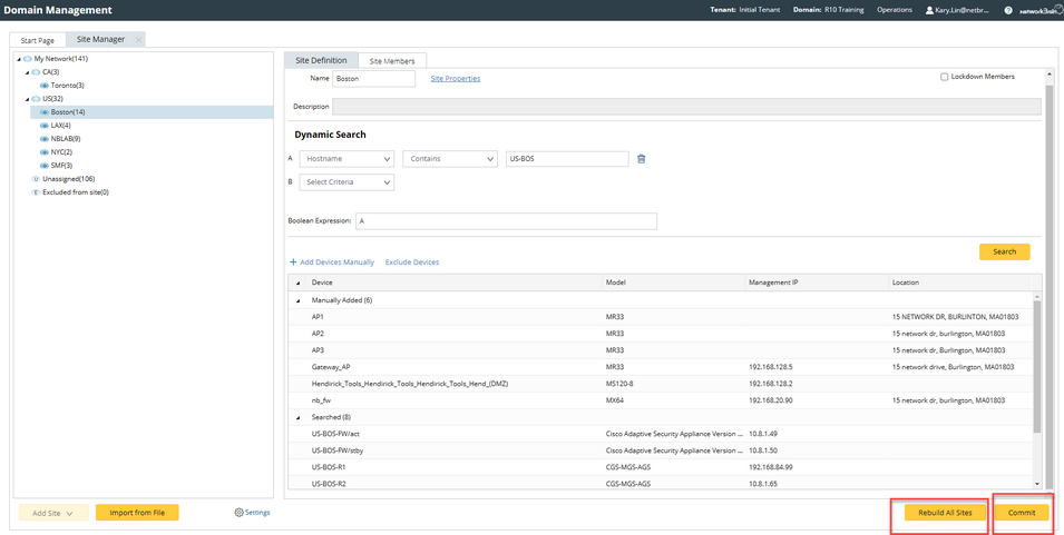 5.In the Site Manager, click Rebuild All Sites to rebuild the site topology. The Site Member pane opens automatically and lists the devices in the current site.