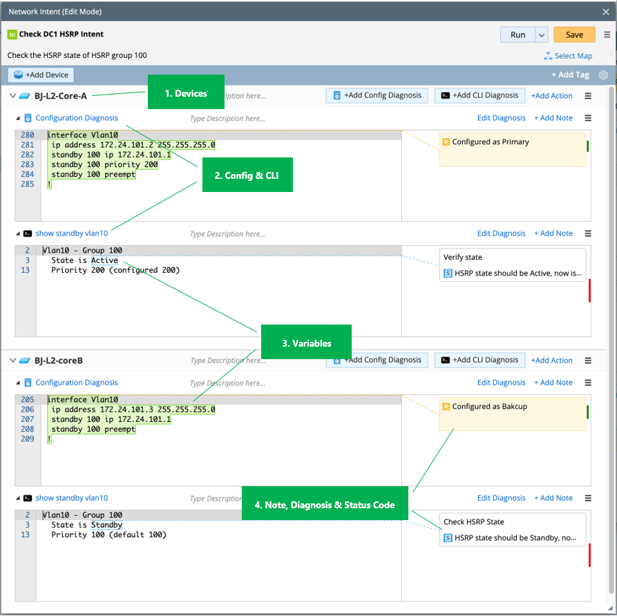 Network Intent (NI) describes a network design for a specific network device, what these design baselines are like, and how to verify design works properly. It provides a way to document network design intent, allowing other engineers to quickly understand the device's design and baseline or normal state of a particular device.