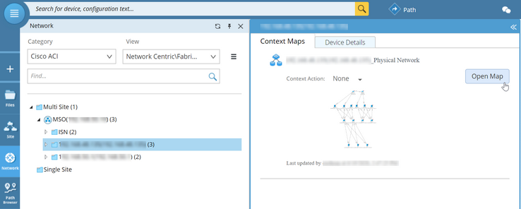 9.Select a Pod or device node, and select the Context Maps tab to view its context maps. The context map displays the physical topology of the selected Pod. You can click Open Map to view the context map.