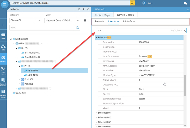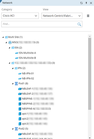 3.Expand the Multi Site node to view MSO (Multi Site Orchestrator) info.