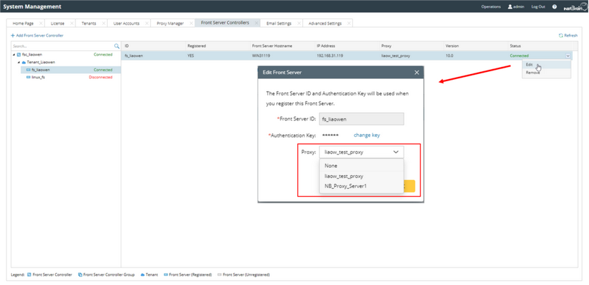 Note: Only the Front Servers of which the registered status is Yes are allowed to be assigned with a Proxy Server.
