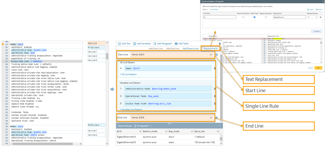 The definition of the following paragraph parser shows the four basic parser rules, including text replacement, start line, single line rule and end line.