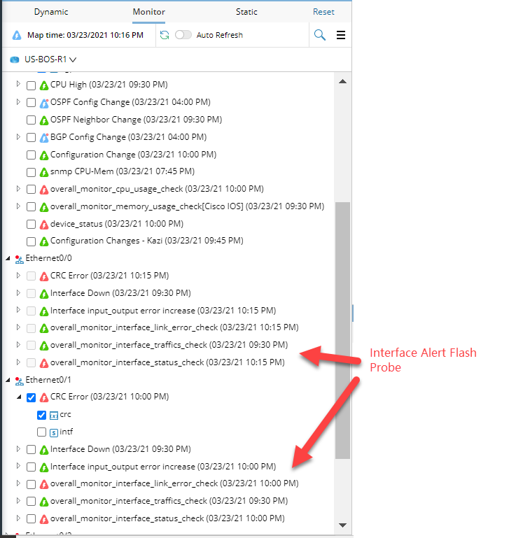 interface alert Flash Probe, it will appear under each interface and the associated Flash Probe.