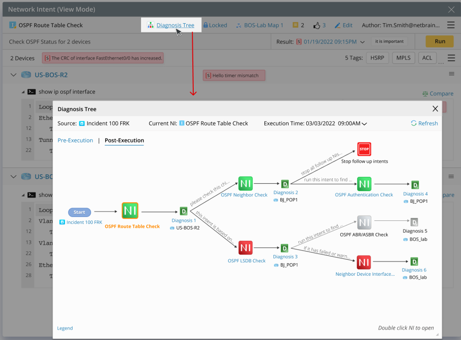 The NI in the NI node of the Runbook is still selected from the NI Manager, so only the Home NI can be selected. After the Home NI and follow-up NIs are executed, only the execution result of the Home NI will be displayed in the Runbook. The result of follow-up NI will not be displayed in the Runbook, and users can view the execution result of follow-up NI through the Diagnosis Tree.