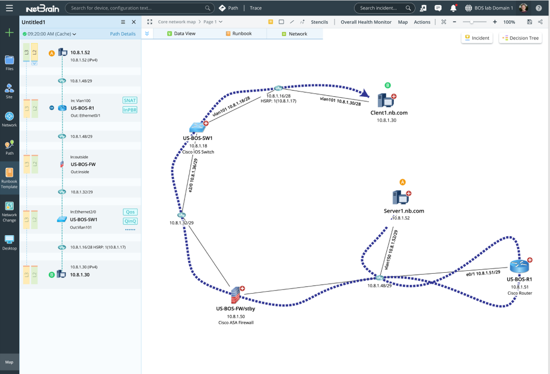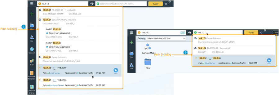 When inputting or selecting an A/B path, the pre-documented path with the same source/destination will be displayed on the intelligence dialog, where you can view the pre-documented path results and draw its path map.