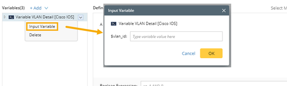In order to define the parser variables with parameters in the commands, you need to manually enter the value of the parameter, so the system knows which command to issue when retrieving the data.