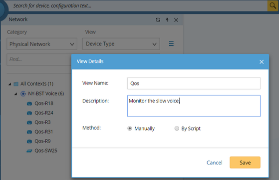 2.Under the Physical Network category, click the View drop-down list, then right-click the All Views to create a new view type QoS.