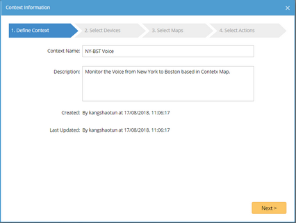4.In the pop-up Context Information dialog, proceed with the following steps to define the context information.