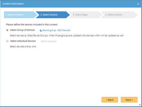 2)Select devices either one by one or from a predefined group. In this case, you can predefine a QoS device group and then add the included devices. Then click Next.