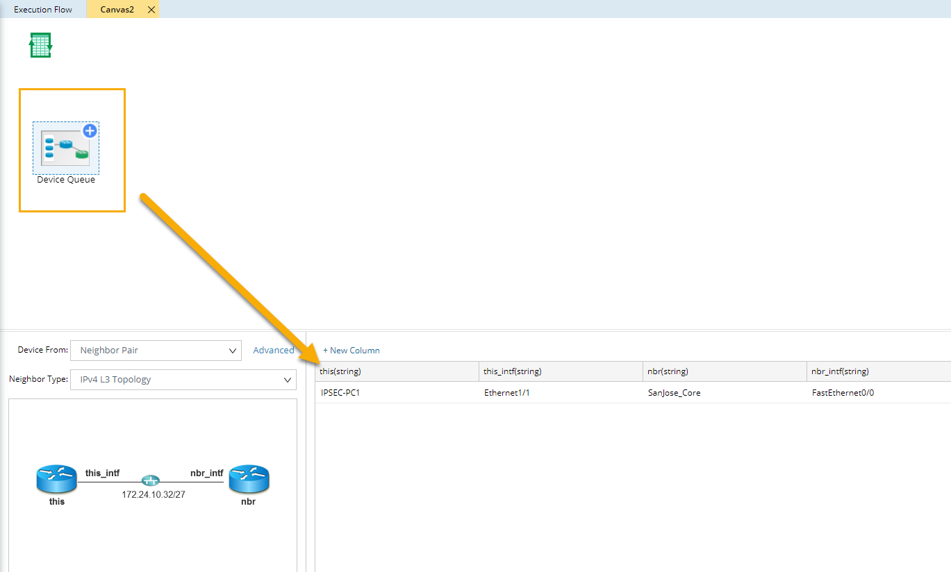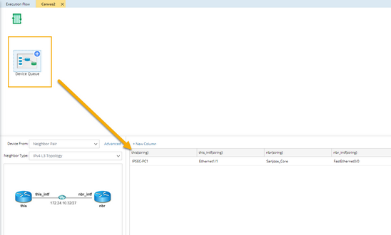 ▪Neighbor Pair — loads devices in pairs and each pair is a pair of neighbor devices. This Device Queue pattern is often used to compare the difference of a device and its neighbor, such as MTU and Duplex mismatch.