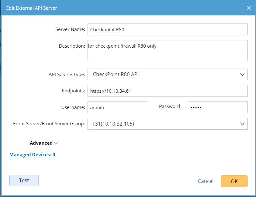 2.1 Configure API Server Manager for Checkpoint Firewall R80.