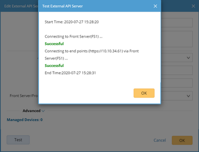 6)Click Test to check the connectivity between your NetBrain Front Server and Checkpoint Management Domain.