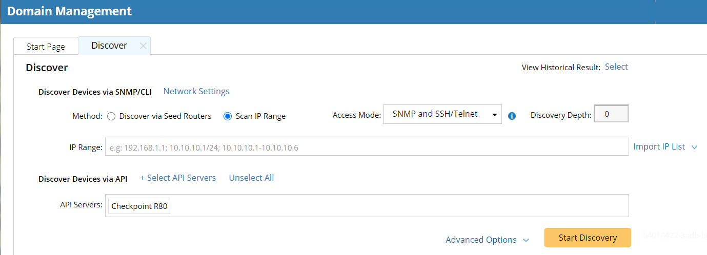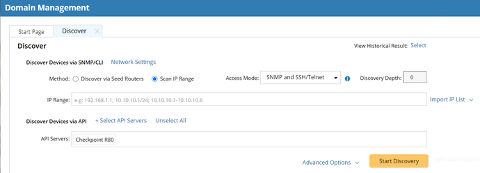 Note: To ensure that CheckPoint Firewall R80 can be correctly discovered in the system, perform the discovery via CLI/SNMP first and then re-run a discovery via API.