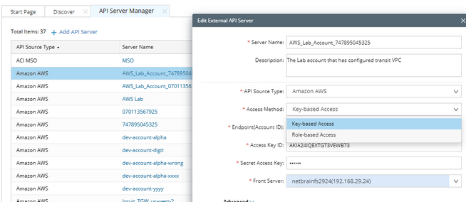 1.Setting up API access: you will need to use either key-based access or role-based access method to discover public cloud Networks.