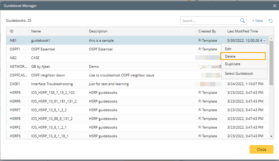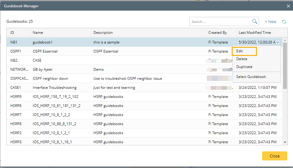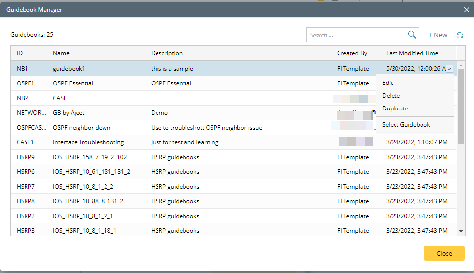 You can view all saved Guidebooks in Guidebook Manager interface, and its respective detailed information: