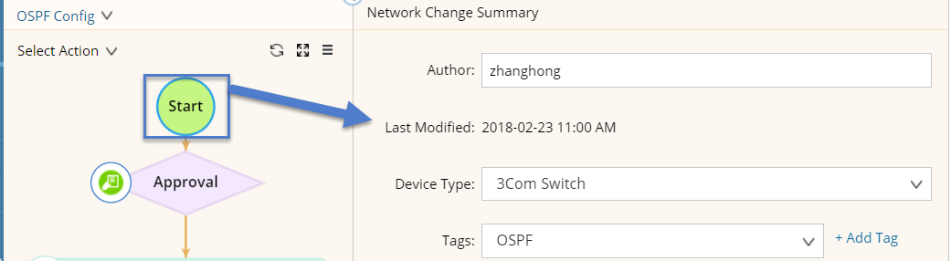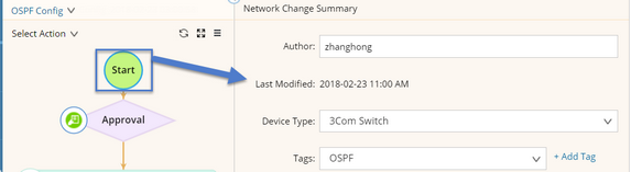 ▪Tags — filter network change templates by specified tag (only if it has been defined in the Start node of a network change template).